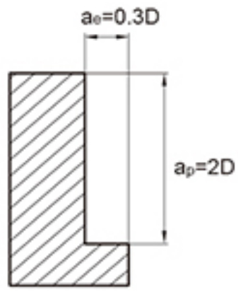 1. 上表は側面フライス加工の標準値を示します。工具で溝を切削する場合、速度は上表の60%~80%、送り速度は50%~70%を目安としてください。