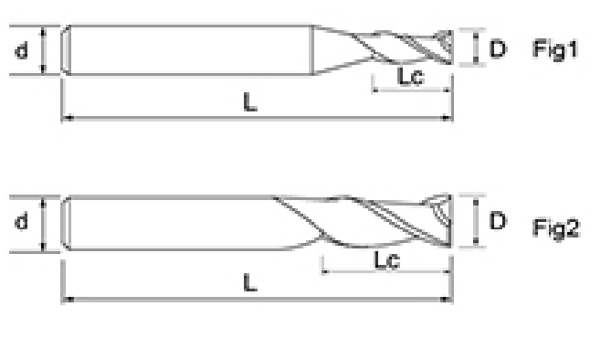 | いいえ。 | 直径 D | 刃長さ LC | 全長 L | シャンク径 d | 刃数 F |