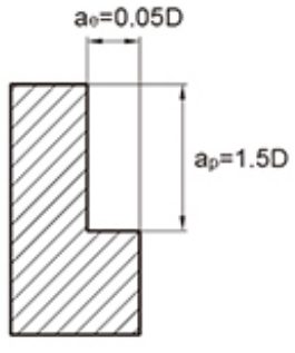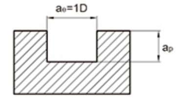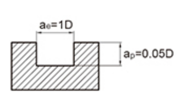 上表は側面フライス加工の標準値を示します。工具で溝を切削する場合、速度は上表の50%~70%、送り速度は40%~60%を標準値としてください。