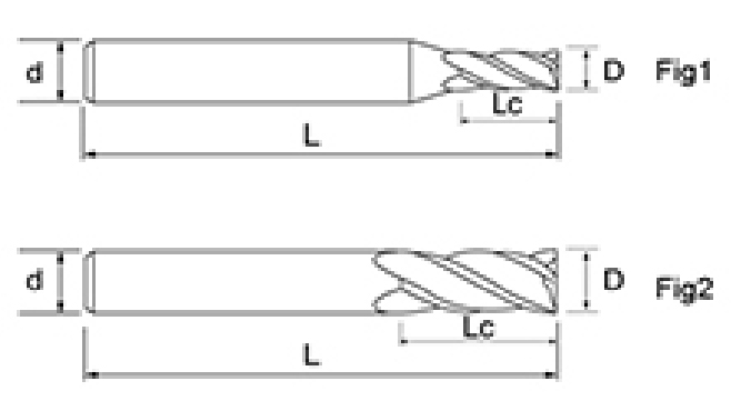 | いいえ。 | 直径 D | 刃長さ LC | 全長 L | シャンク径 d | 刃数 F |
