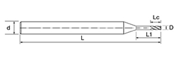 | いいえ。 | 直径 D | 刃長さ LC | 有効長 L1 | 全長 L | シャンク径 d | 刃数 F |