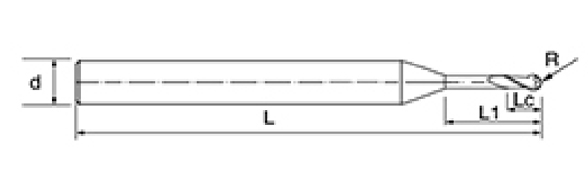 | いいえ。 | 直径 D | R角度 R | 刃長さ LC | 有効長 L1 | 全長 L | シャンク径 d | 刃数 F |