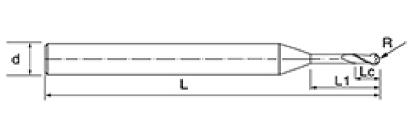 | いいえ。 | 直径 D | R角度 R | 刃長さ LC | 有効長 L1 | 全長 L | シャンク径 d | 刃数 F |