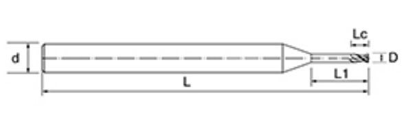 | いいえ。 | 直径 D | 刃長さ LC | 有効長 L1 | 全長 L | シャンク径 d | 刃数 F |