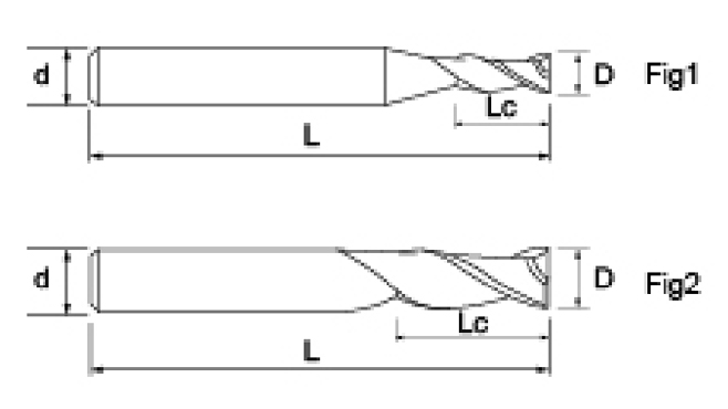 | いいえ。 | 直径 D | 刃長さ LC | 全長 L | シャンク径 d | 刃数 F |