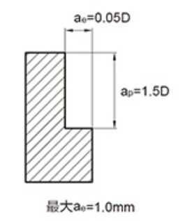2. 工作機械やワークの取り付け剛性が低い場合、振動や異音が発生する場合があります。この場合、上表の速度と送り速度を前年より下げる必要があります。