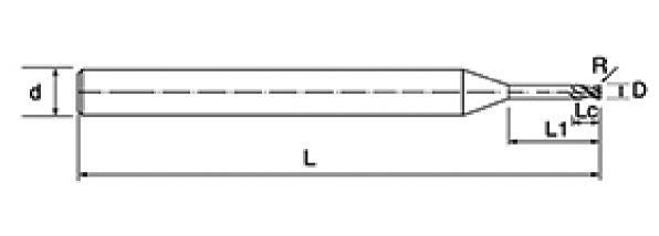 | いいえ。 | 直径 D | R角度 R | 刃長さ LC | 有効長 L1 | 全長 L | シャンク径 d | 刃数 F |