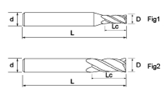 | いいえ。 | 直径 D | 刃長さ LC | 全長 L | シャンク径 d | 刃数 F |