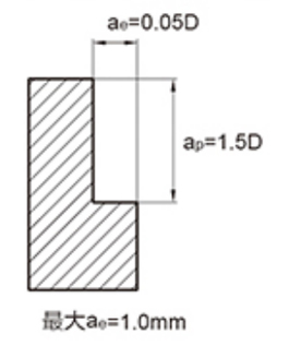 2. 工作機械やワークの取り付け剛性が低い場合、振動や異音が発生する場合があります。この場合、上表の速度と送り速度を前年より下げる必要があります。