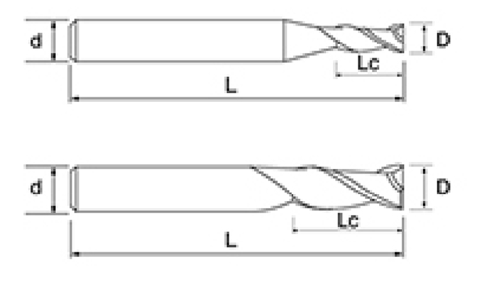 | いいえ。 | 直径 D | 刃長さ LC | 全長 L | シャンク径 d | 刃数 F |