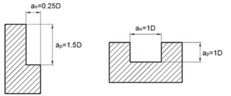 1. 上表は側面フライス加工のベンチマーク値に基づいています。スロットミーリングの切削条件は上表の切削速度の70%、送り速度の50%を基準としています。