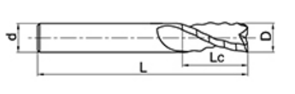 | いいえ。 | 直径 D | 刃長さ LC | 全長 L | シャンク径 d | 刃数 F |