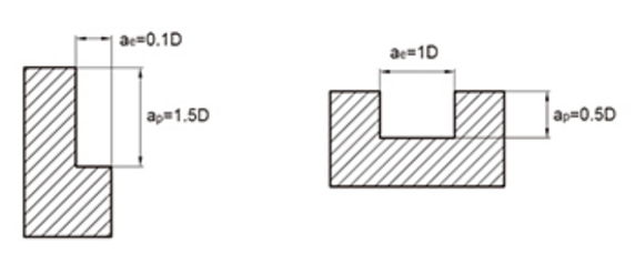 1. 上表は側面フライス加工のベンチマーク値に基づいています。スロットミーリングの切削条件は、上表の送り速度の 70% を基準としています。