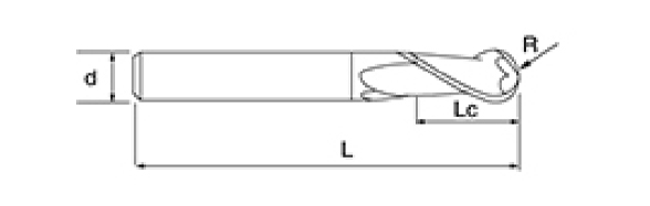 | いいえ。 | 直径 D | R角度 R | 刃長さ LC | 全長 L | シャンク径 d | 刃数 F |