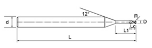 | いいえ。 | 直径 D | R角度 R | 刃長さ LC | 有効長 L1 | 全長 L | シャンク径 d | 刃数 F |